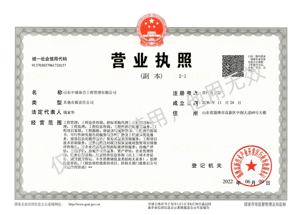 山東中盛泰合工程管理有限公司成立于2006年,經過多年發展與積累已成為山東省及區域內最具活力的工程造價專業咨詢機構與綜合性建設項目管理咨詢機構之一。公司是由國家住建部批準的全國工程造價咨詢甲級資質企業,山東省住建廳核定的山東省工程造價咨詢A級資信企業,中國建設工程造價管理協會會員單位,山東省工程建設標準造價協會理事單位、淄博市建設工程招標投標和標準造價協會副會長單位、山東省全過程工程咨詢服務試點企業。公司已通過ISO9001國際質量體系認證、ISO14001國際環境管理體系認證、ISO45001國際職業健康與安全管理體系認證,多年連續獲評省市行業先進單位、淄博市工程造價咨詢十佳企業,造價咨詢成果優秀企業;公司為山東省施工全過程造價控制規則等行業標準規范編撰單位,省建筑工程消耗量定額學習匯編資料編制單位等……